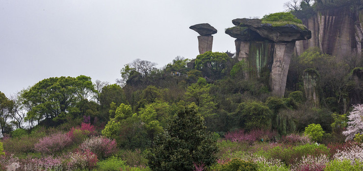 花果园林,是吼山风光的一大特色。花果满坡与山水风光相映成趣。素有"花果山"之称,吼山桃林,历史悠久,享有盛名,为蔡元培先生所开辟,至今已有七十多年每年三月中旬 至四月中旬"桃花节"游客云集,争睹这江南春天的迷人画卷。