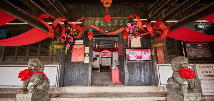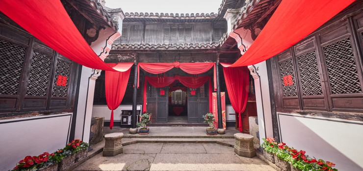 特定的时间在这里还可以见识到一场复古的江南迎亲仪式,迎亲的船队一到,新娘就在家人的护送下登上喜船,坐进船上的红轿子里,一路鞭炮、锣鼓响起迎亲船队在狭窄的水巷中穿行。