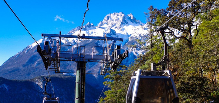 云杉坪索道是玉龙雪山景区三条索道之一,也成为小索道。游客可以从位于白水河附近的索道下站乘坐索道,直达海拔3240米的云杉坪。云杉坪传说是以前很多青年男女的殉情之地,在这里可以观赏到茂密的云杉树林、高山草甸,还可以观看玉龙雪峰,景色壮观。