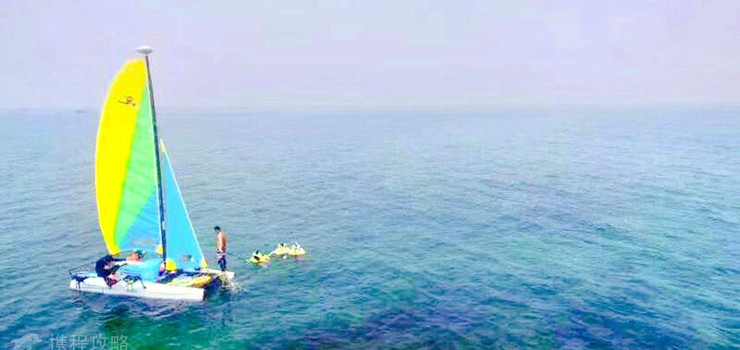 涠洲岛是火山喷发堆凝而成的岛屿,有海蚀、海积及溶岩等景观,有“蓬莱岛”之称,这里蓝天、白云、岩石、巨浪交相辉映,美不胜收。涠洲岛风情水上俱乐部游玩路线主要是坐帆船乘风破浪出海航行,在岛上景点之一的蓝桥附近浮潜,在教练指导下玩冲浪板。浮潜所需装备都有提供。在专业人士的指导下,带你从另外一个角度看到不一样的涠洲岛。