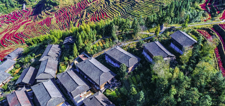 总面积近千亩。主要以花海梯田、高山叠瀑、桑江、少数民族民俗文化为主要景观。