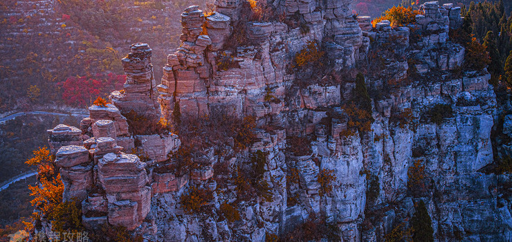 景齐长城遗址、古兵营、千年石门游览区 齐长城遗址海拔712米,主要景点有古兵营遗址、千年石门、古水窑、双面武士、晚风亭、一线天、生命之石、天然吧台、群英会、独山寨、骆驼峰等景点。当游览齐长城,看到那断臂残墙,就会遥想起远去的古战场,也仿佛看到了当年那惨烈的厮杀场面,使人感到不虚此行。