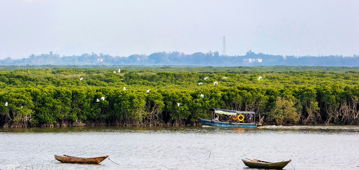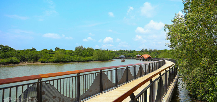 东寨港红树林保护区是中国红树林自然保护区,被誉为“海上森林公园”,在这里一定要坐船游玩才能全面欣赏到保护区的景色。这里虽被叫做红树林,但实际上树叶颜色依旧是郁郁葱葱的绿,坐船沿海道蜿蜒而过,沿途都是半淹在水中的红树林,让人不得不惊叹他们顽强的生命力。若运气好,船行中还能看到各种鸟类,特别是到了秋冬季,这里几乎是候鸟的乐园。