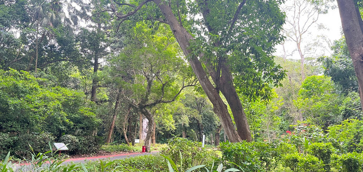 上世纪50年代,为了发展中国的天然橡胶事业,“两院人”(当时的华南亚热带作物科学研究所和华南农学院海南分院)从广州石牌的南秀村南迁至现在的海南儋州宝岛新村,并在周恩来、王震同志的关怀下建立了海南热带植物园。经过近60年的发展,园区现占地面积100公顷,共有源自40多个国家的2600多种热带、亚热带植物,其中国家保护濒危植物50多种、热带花卉750多种、南药资源1000多种。