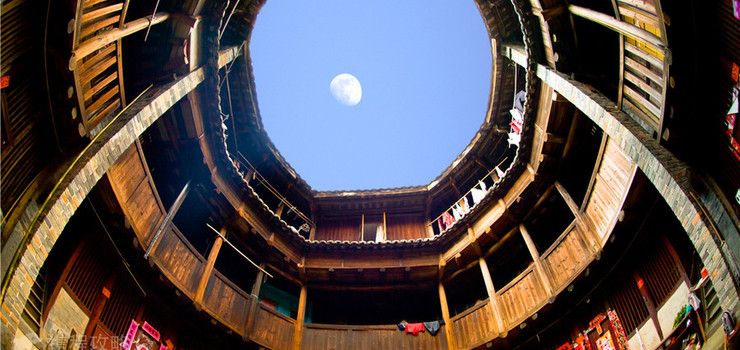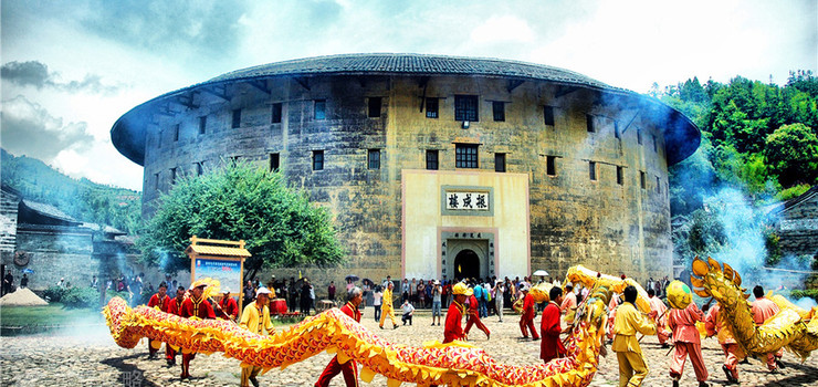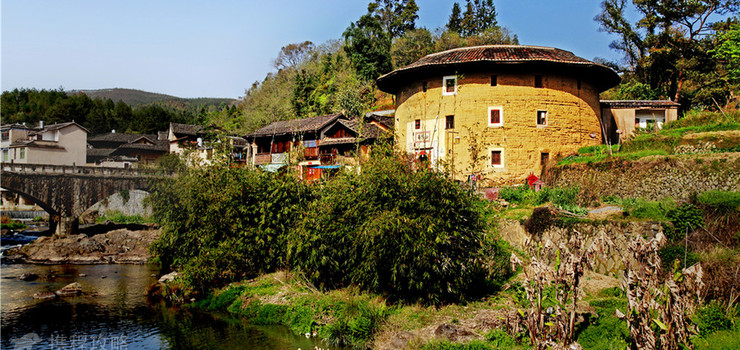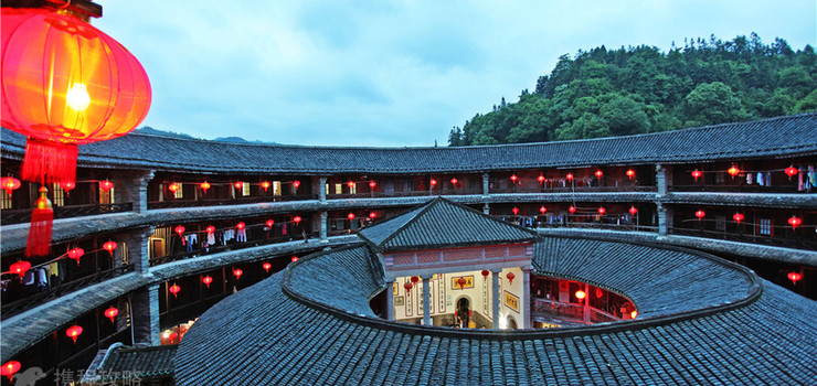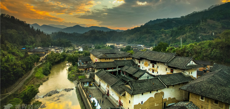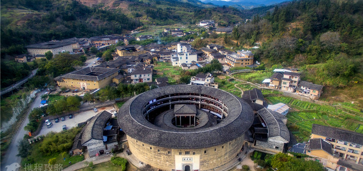 洪坑土楼民俗文化村实景图一