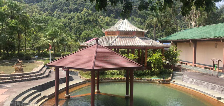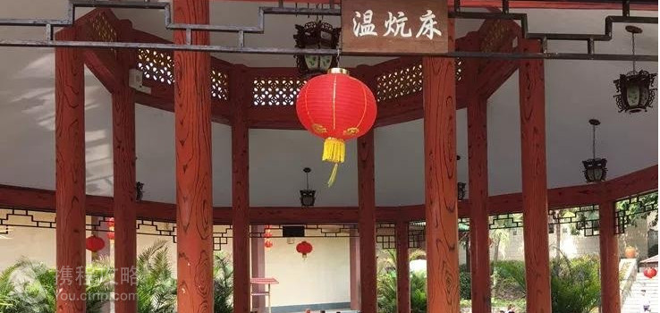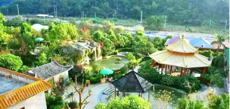 温泉度假村总占地面积约8多万平方米。度假村在四周群山环抱之中,空气当中含80%负离子,几千棵桂花树香气怡人,林木花草覆盖率达90%以上;建筑风格独特,极具古代园林的浓郁气息。夏季平均温度在20~25度之间,早晚清凉,是休闲养生、避暑度假胜地。
