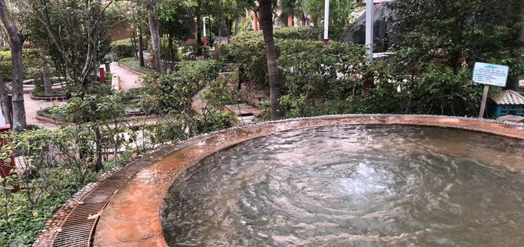 温泉露天区共有大小功能池40多个,夏天从远处的山上引来清凉的山泉水供给大型冲浪池、国标游泳池、儿童嬉戏池等。冬天特色的亲亲鱼疗池、中药养生池、温水游泳池、高温温泉池、温矿床等。