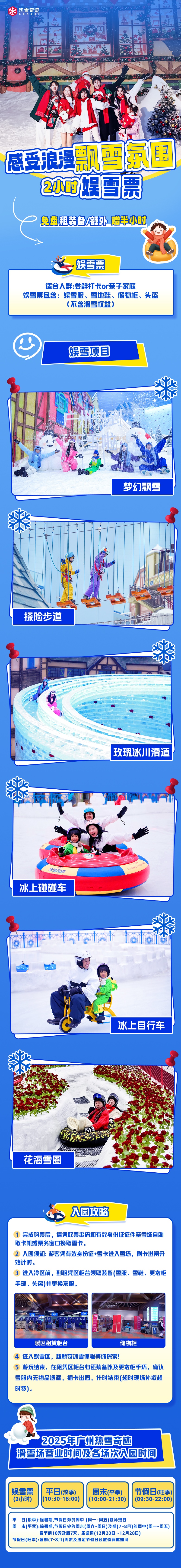无论是享受雪地里的亲子时光、速度感十足的滑雪运动,广州热雪奇迹都将以360度的清凉体验,全年365天为游客带来冰雪的盛大嘉年华!