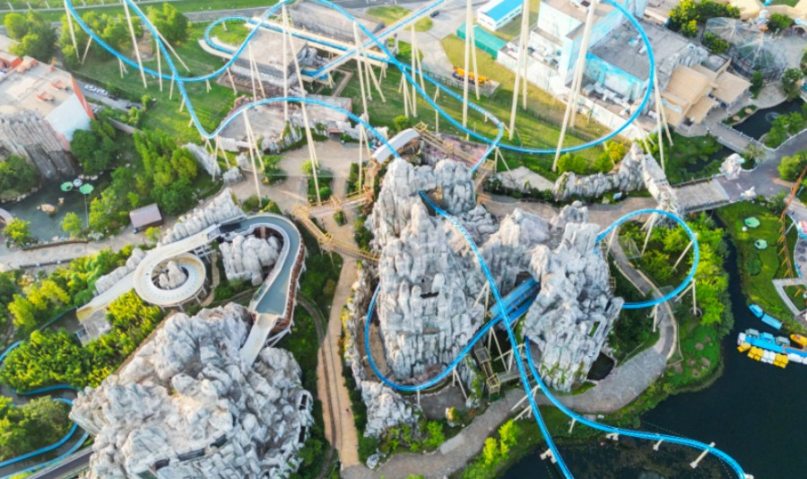 占地面积57万平方米,由世界知名主题乐园设计公司美国RVJMA公司设计,拥有多项创新的游乐项目和精彩的娱乐表演,为江南传统文化赋予时尚元素的主题乐园。以传统江南文化为主题,设计了运河人家、泡泡泉小镇、霞客神旅、蒸汽时代、田园欢歌、冒险港湾六大主题园区,拥有34台(套)一流设备,其中7台(套)为国内首台,皆由世界知名设计公司设计。用崭新视角重塑江南文化,将传统文化的深远意蕴与欢乐刺激的乐园氛围完美融合,亭台水榭幽然、小桥巷弄婉转,于闹中藏静,让您在畅玩中感受吴越水墨风情;游客既可体验大型黑暗乘骑“西洋惊涛”带来的震撼效果,也可以感受大型舞台剧“蒸汽时代”,还可以乘坐“飞翼过山车”,高能刺激的史诗级大型游乐设备,让您的肾上腺素急速飙升,体验不一样的心跳感受。
