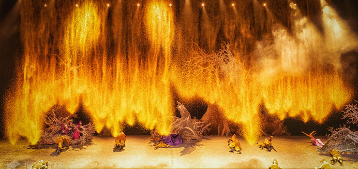 全剧利用了39种专利技术和上百套舞台基础装置,400立方流沙装置、鸟型升降台、大型升降前后倾斜台、数控水幕等大体量舞台表演机械,并首次独创人屏合一技术等,将各种真实的风沙暴、暴风雪、海市蜃楼、山崩地裂、金戈铁马等场景逼真呈现,让观众切身体验到极度震撼的视觉效果。