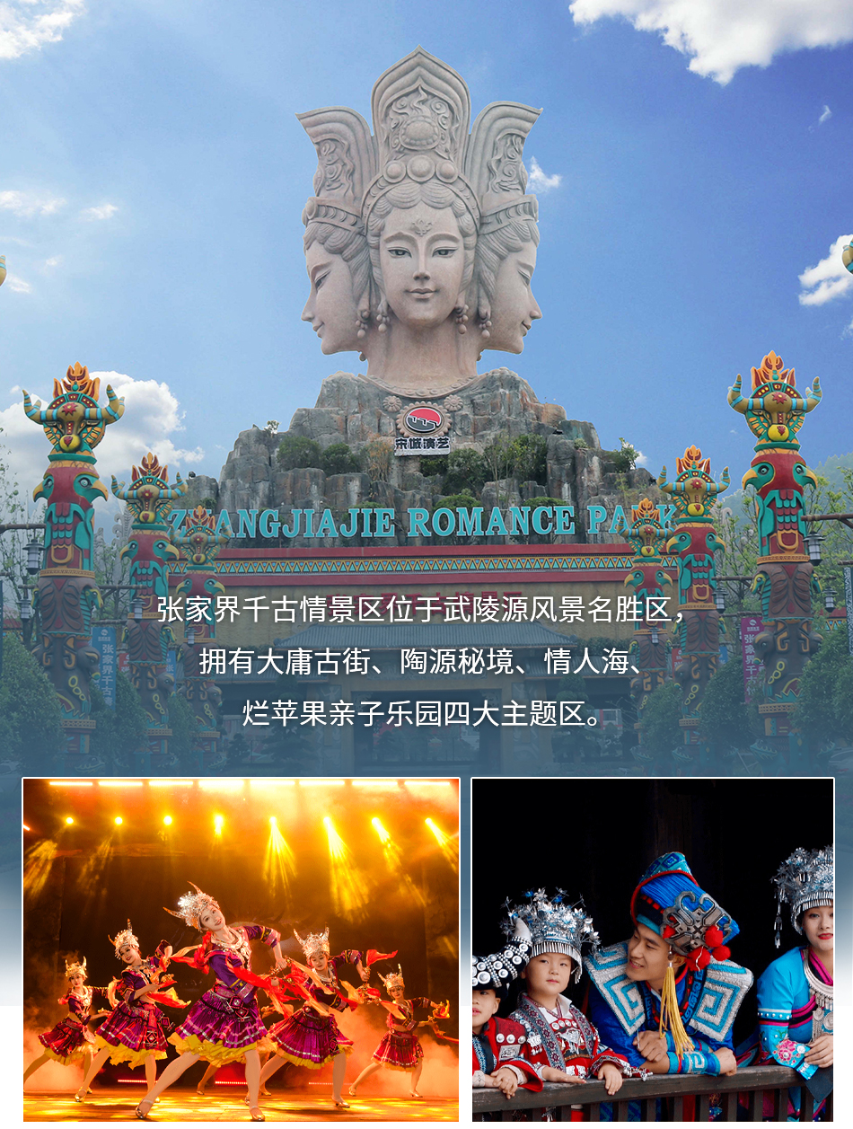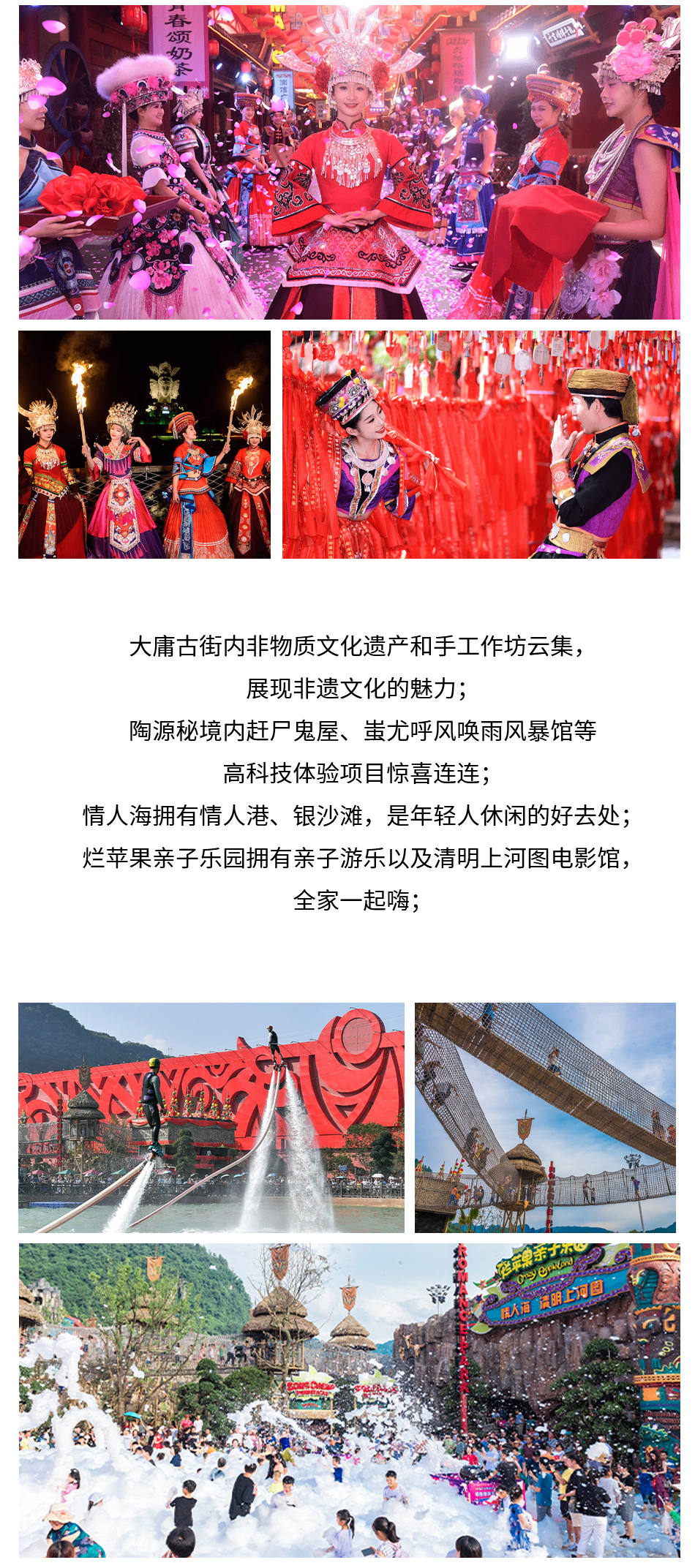 拥有大庸古街、陶源秘境、情人海、烂苹果亲子乐园四大主题区