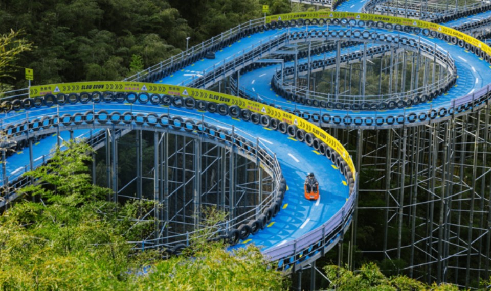 天路飞车,大洋彼岸的超酷玩法,坐上2200米滑板车,一层层绿色的“竹浪”向你奔赴而来,风驰电掣,体验速度高度的双重刺激。