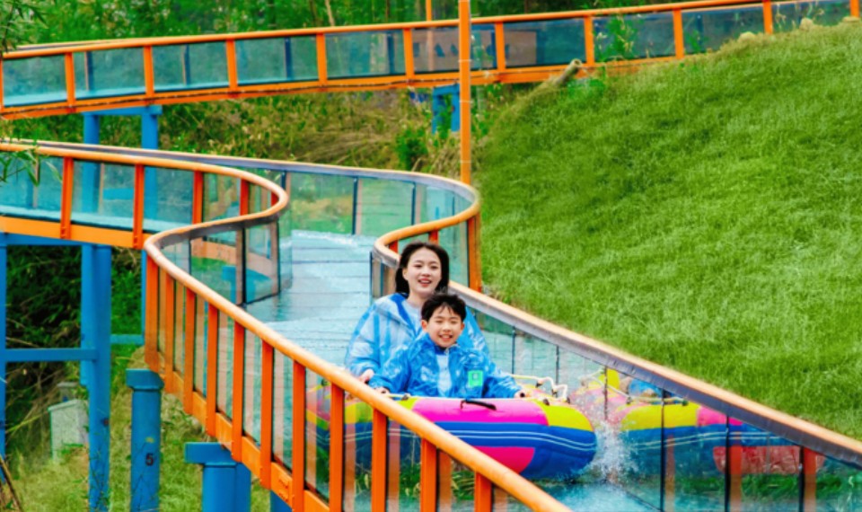 熊猫部落探险乐园,拥有天路飞车、竹间漂流、熊猫上山、威亚飞人、竹林穿越、熊猫大蹦床、弹力飞人等游乐设施,竹林咖啡、萌宠乐园、百鸟世界、攀爬树阵、秋千岛等休闲娱乐设施超25项,并配套游客服务中心等服务设施,打造集山地观光、亲子游乐、极限挑战、水上运动、休闲服务、动物互动、特色演艺、田园风光于一体的山地旅游发展新集合,满足亲子家庭四季游玩需求。