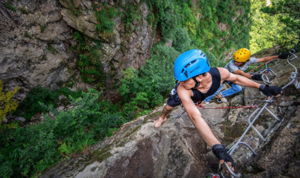 飞拉达・悬崖穿越:作为铁道式攀岩项目,飞拉达・悬崖穿越让您有机会在峭壁之间辗转腾挪。穿戴好专业的攀岩装备,沿着峭壁上精心铺设的铁索和脚蹬,一步一个脚印地向上攀爬。攀爬过程中,不仅能锤炼自身的勇气和力量,还能近距离领略峭壁的险峻雄奇,每一次发力、每一次移动,都伴随着肾上腺素的急剧飙升,让您尽享挑战极限。