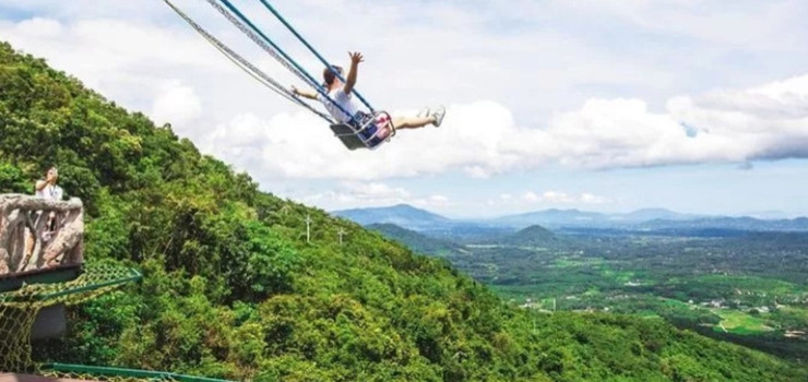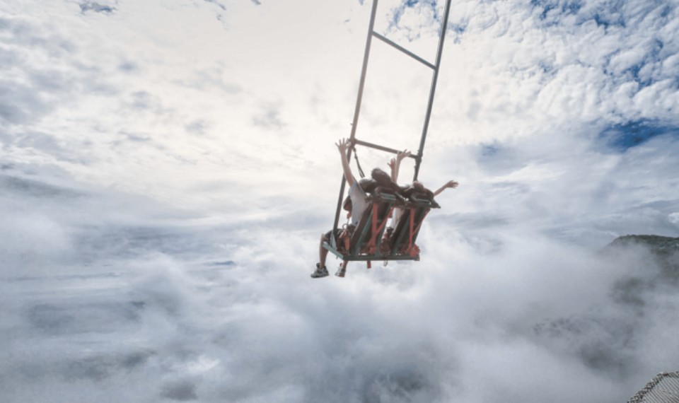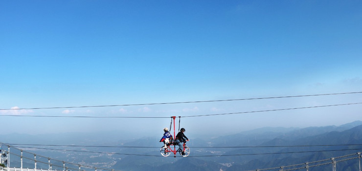 悬崖秋千:临崖而设的秋千群,为您提供4米、6米、8米、10米多种荡索长度选择。坐上秋千,在狂野的山间用力一荡,刹那间,“命悬一线” 的惊险感扑面而来,身体随着秋千的大幅度摆动在高空来回飞舞,耳边呼啸而过的风声仿佛是勇气的赞歌。在这尽情释放的过程中,您能深切感受到生命的蓬勃律动,内心的压力也随之烟消云散。