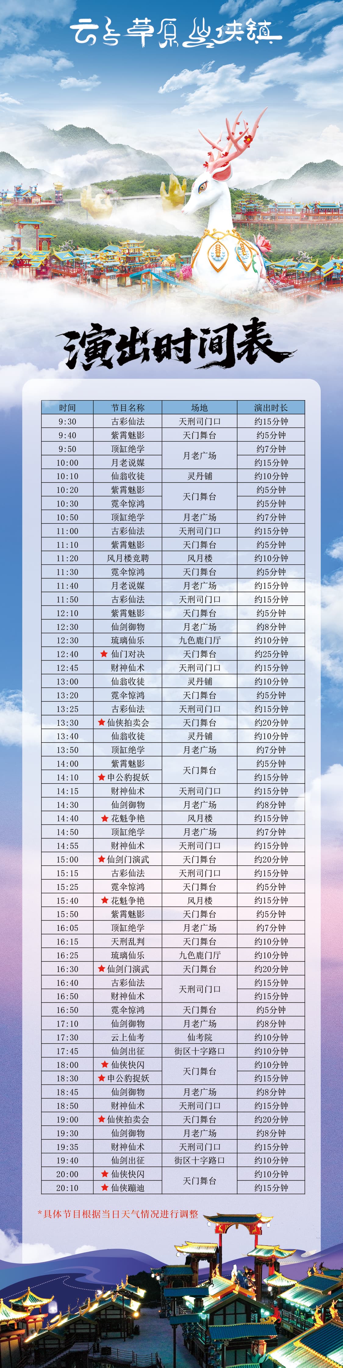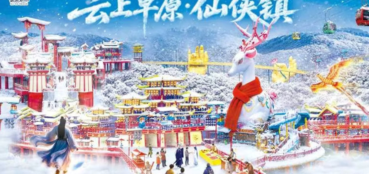 云上草原仙侠镇,位于浙江省安吉县云上草原景区内,坐落于海拔1168山巅之上,以云海仙市、高山游艺、沉没互动、梦幻夜游、国风旅拍为笔墨,以山峦云海为画布,讲述了“见鹿者得福报、守青山即修仙“的故事。游客在仙侠镇可沉浸体验到奇幻玄妙的仙侠幻境、畅游国风国潮的云海仙市、打卡牧云入雾的仙风场景,玩转真人NPC仙界闯关,挑战丰富多彩的游乐项目。云上仙侠镇与云上草原四季美景交相呼应,进一步展现了“绿水青山就是金山银山”的美丽画卷。