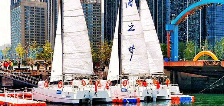 帆船体验区,乘帆船“海上看大连”的休闲体验。首先是看海,还有海上看大连,完全是不同的感觉,大家以此向西看那是大连市昨天百年的历史文化,大家以此再向东看那是大连市今天与明天的发展远景,完全可以说大连港这里就是历史与未来的交汇处,就是时空穿越的临界点。