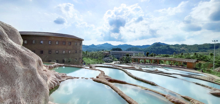 灵石温泉位于赣州市南桥镇,以客家历史文化为底蕴,康乐围与乾坤楼形成天圆地方的格局。温泉水为国内稀有的复合型天然矿泉,共有大小泡池40几个,其中灵石水台、溶洞温泉、极地SPA为特色体验。这里远离城市喧嚣,悠然安静享受温泉,傍晚看夕阳,夜晚看星星,别有一番风味。