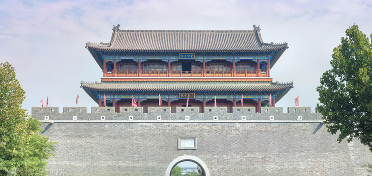 青州古城始建于北魏时期,金元明清为府署所在。初为土城,砖城建于洪武三年,城墙高12米,厚6米,长13华里零108步,共有城垛口1777个,有海晏、岱宗、阜财、瞻辰四座城门,阜财门城楼就位于青州古城东侧的马道口。