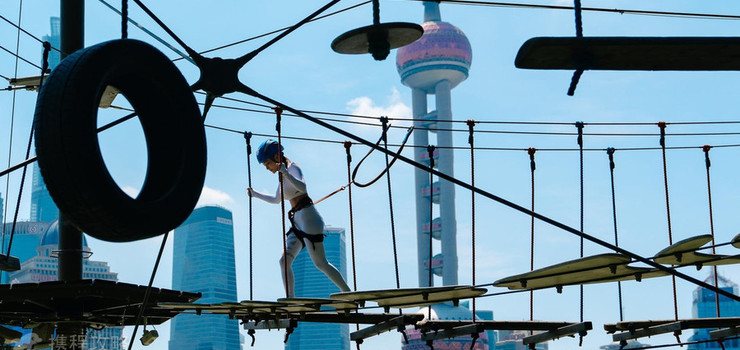 二到四层为高层攀爬挑战区,包含了多达96种难度各异的攀爬元素,体验者可根据自身运动水平自由选择体验。
