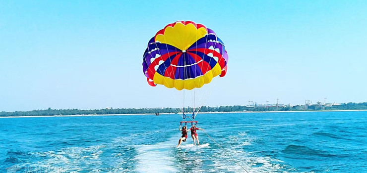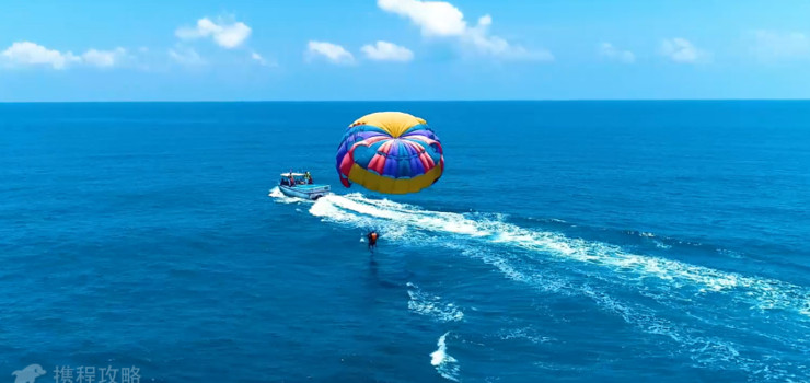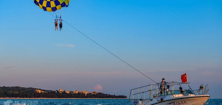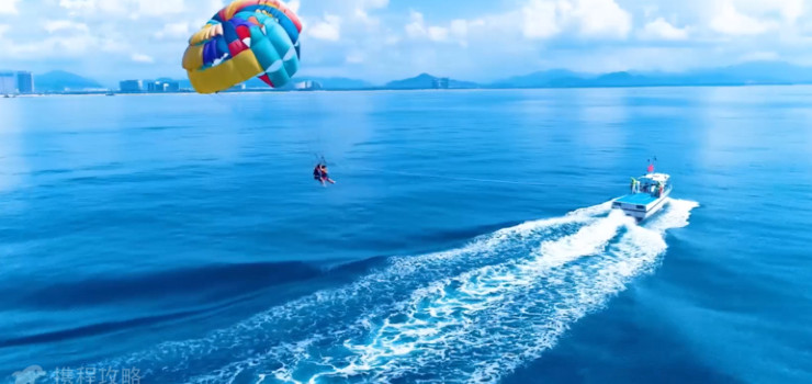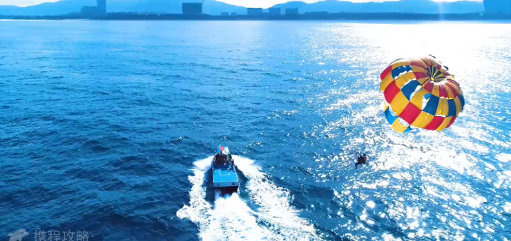 海上拖伞因其乘坐危险系数小、难度低受到广大游客欢迎。海上拖伞腾空而起的快意,耳边呼啸而过的疾风,骤然上升的速度和被牵引的力量,似乎让你长出一双轻灵的翅膀,载满无限的希冀,向着蓝天和大海进发……居高临下饱览银滩和大海美景的惬意以及沐风巡游的畅快定会令您耳目一新。