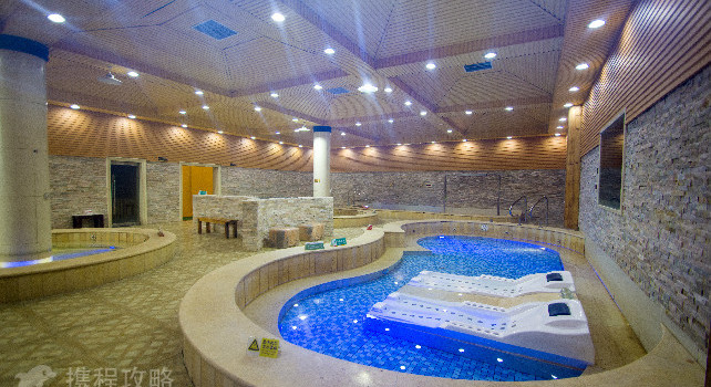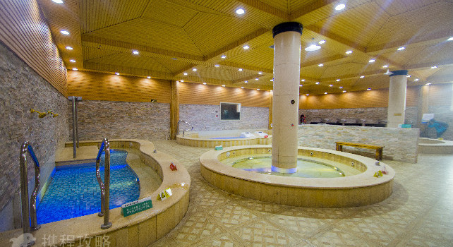 游泳馆宽敞明亮,水质清澈,环境干净卫生,泳池边设计有高、底温泉池,可享受泡不同水温所带来的乐趣。温泉大厅设有养生浴设备,可以体验花瓣、牛奶、中药等多种特色泡浴,更有桑拿、维其浴、水床等温泉项目等你体验享用。