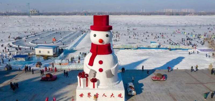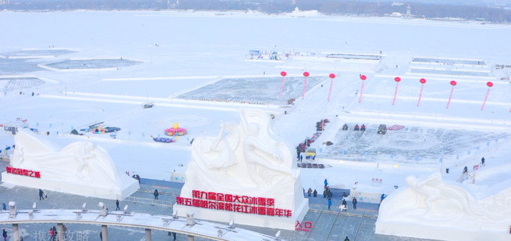江上大众冰雪嘉年华是一座以松花江面防洪纪念塔延长线为中心、长490米,宽250米,总占地面积约为12万平方米的封闭式、半公益式冰雪主题乐园。