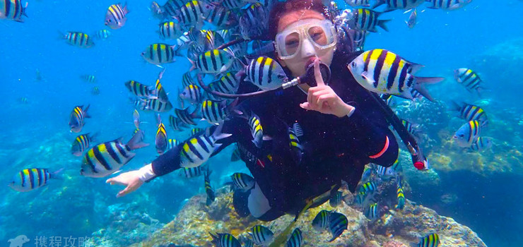 亚龙湾是三亚开发得比较早的潜水海域,来这里潜水的人也非常多。亚龙湾海域水质清澈透明,能见度很高,海底也有丰富的珊瑚族群和热带鱼类,景色十分优美。亚龙湾潜水的地方也很多,很多豪华酒店中也会有潜水项目可以体验。