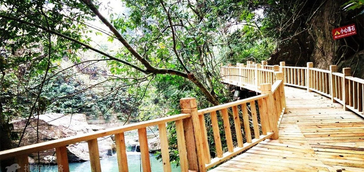 溪谷栈道,全场1.25公里,逆流而上,沿涂可以领略最美的自然生态景观和林下溪谷、溪谷瀑布等自然风光。