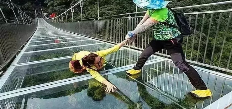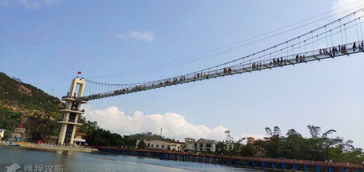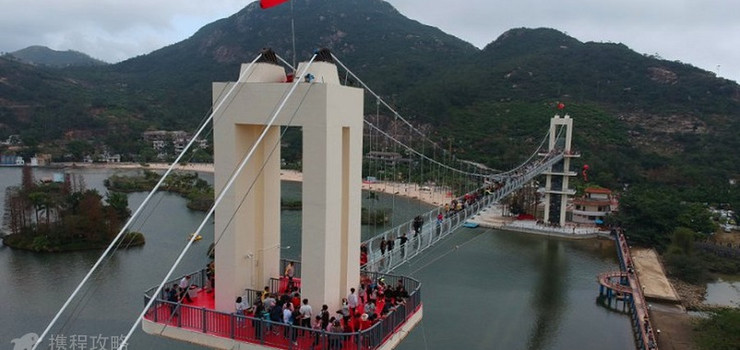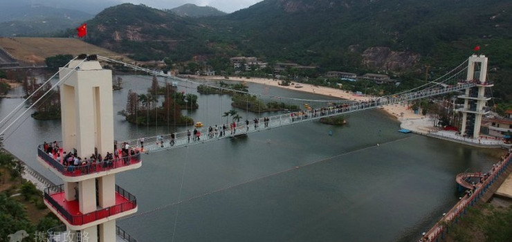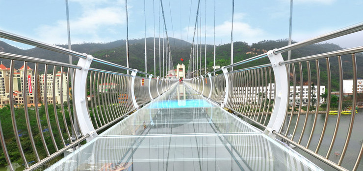 古兜财神玻璃桥位于古兜温泉小镇山泉水世界内,全长200米,桥高50米。桥面悬空300米。玻璃桥经过幻影触碰技术玻璃特效刺激,在同一桥面观赏山海湖泉绝美风光,把古兜温泉小镇的繁华全景尽收眼底。