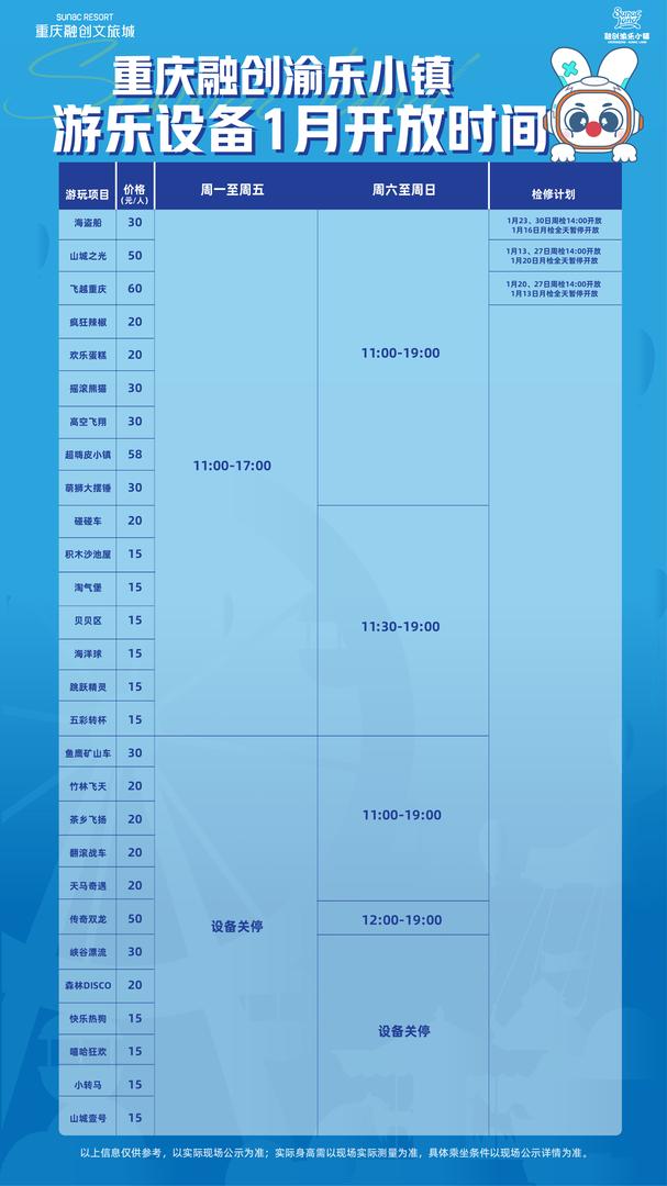②游乐设备1月开放时间,仅供参考: