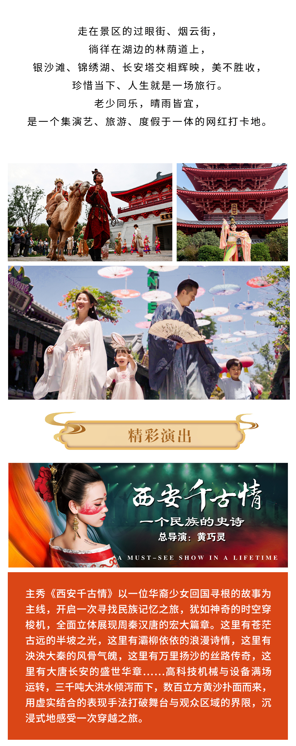 西安千古情景区是一个穿越古今、颠覆想象的景区,由西安世园集团、宋城演艺联合打造。