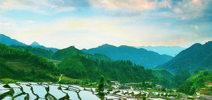 欧家梯田位于广东省清远市连山壮族瑶族自治县太保镇欧家村,海拔400-800米之间,一年四季气候分明,年平均气温为18.9°。欧家梯田四面环山,森林覆盖率达93%,负离子含量极高,是氤氲天地山水灵气的天然森林大氧吧。这里春回醉山花,夏至山峦翠,秋来金穗灿,冬披银毯妆,是四季皆宜的旅游度假圣地。