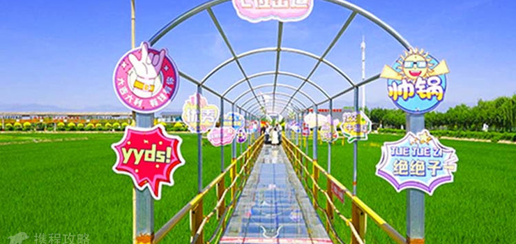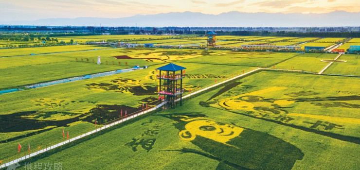 站在高高的观景台上,方圆五六十亩稻田,是一幅美丽的图画!以大地为纸,以稻禾为颜料”的稻田画在园区内,占地500亩……