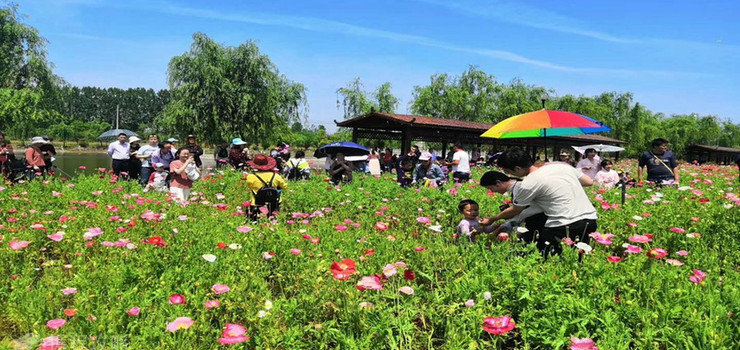 在景区内,以桂花、荷花、月季、海棠、桃花、玉兰、紫薇、樱花等种植为主体的八大园区,集合了多达12种花卉,市民游客在一年四季月月都能游玩赏花,近距离接触不同类型的花仙子雕像。景区让“节日在花朝,休闲在河湾”的乡村休闲生态游触手可及。