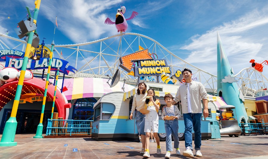 欢迎来到照明娱乐的小黄人乐园,这是一个充满欢乐的缤纷世界!此刻这些调皮的小黄人正在街区、港口和市中心走街串巷,无拘无束地满世界撒欢!同时格鲁也正在为小黄人军团招兵买 马,赶紧前往格鲁家报名吧!《欢乐好声音》巡演的首站公演此时也正在照明剧场上演,在那里,你将与众多来自《欢乐好声音》中的明星角色一起欢歌载舞! 另外,在超级萌乐岛,萌转过山车和超萌漩漩涡正等待挑战者的到来!对于喜爱他们的人而言,一定不要错过!赶快行动吧,小黄人乐园的无穷乐趣正等你发现!