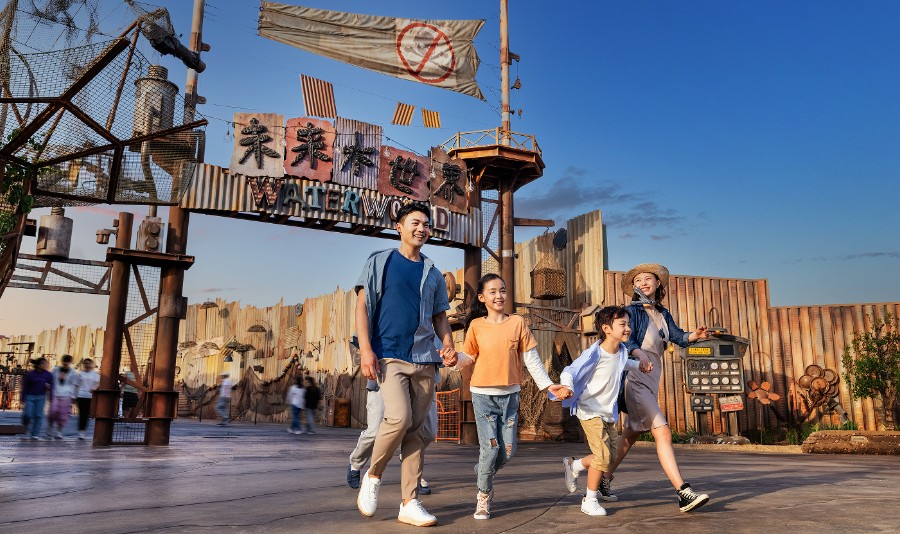 在未来的某一天,两极冰川大量消融,海平面不断上升,陆地也随之被汪洋淹没,人类依附于人造的环礁岛艰难生存,找寻最后一块“干地”。这便是未来水世界,人类文明仅存的避难所。这里不仅有着超乎想象的丰富物产,还有一场充斥着激烈打斗场面的未来水世界特技表演。逼真的爆破,前 所 未 有的真实飞机坠毁现场,都让你亲身感受这场善与恶的终 极对决!除此之外,你还将遇到一座几经翻修的老旧餐厅 “漂流者小馆”,在这你可以一边享用美食,一边尽情观赏这座奇特的水上世界。但如果你想尽快开启下一场冒险,广场上的 “环礁岛小吃”和“盐老板”小吃餐车,也是你最便捷的选择。