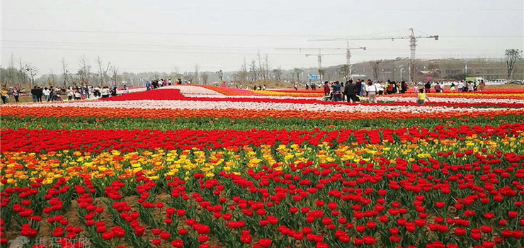 七彩大地花海乐园打造了一个荷兰风情郁金香田园炫目花海,园区汇集了国内外郁金香50多个品种,30多种花色,百万株郁金香,在七彩大地旅游景区打造了近千亩绚丽多彩的郁金香花海,游客在这里可以感受到独具荷兰风情五彩缤纷的郁金香梦幻盛景,盛况难得一见。