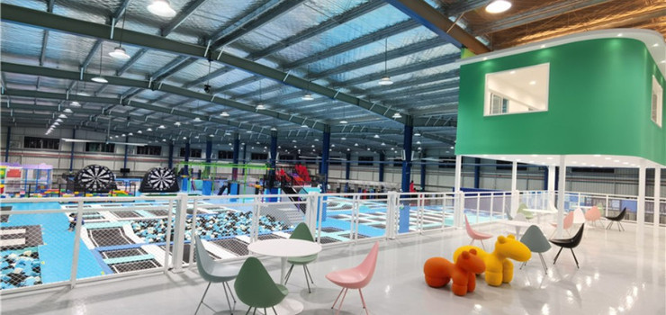 整个园区共有24个项目,包括成人乐园: 自由蹦床区(自由连连蹦),V字蹦床区,专业蹦床区,极限灌篮区,魔鬼滑梯区(魔鬼滑梯、彩虹滑梯、浪浪浪滑梯),忍者闯关区,勇攀高峰区(摇摆擎天柱、蜘蛛墙、勇者攀岩),心跳体验区(一站到底、蜘蛛塔、旱雪滑梯、幸运大转盘),竞技体验区(射球粘粘乐、脚下台球、躲避泡泡球、平衡独木桥),高空拓展区(高空跳台、高空滑索、高空拓展)。儿童乐园: EPP积木城堡,儿童淘气堡等 ~