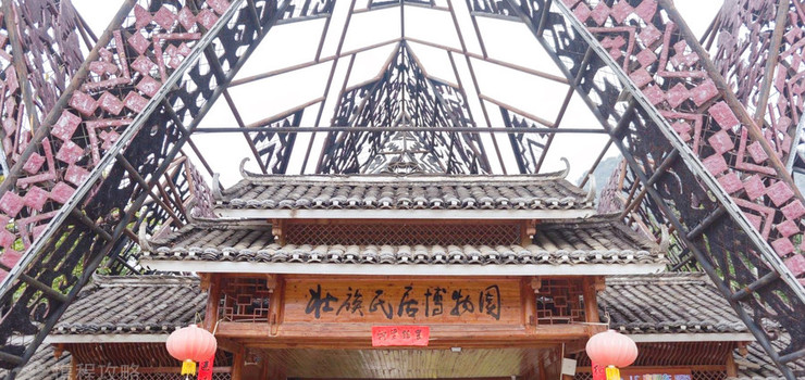 壮族民居博物园素有“小桂林”之称。方圆20公里的景区属于喀斯特地貌,发源于越 南的名仕河从中穿过,蜿蜒曲折盘绕在万点峰峦之间。景区内河水清澈,田野绿茵,风光旖旎,风景秀丽,一派山水田园风光。有人工湖景、壮族村落、土司民居、竹排漂流和风情小街等五个功能区。