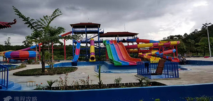 建水曲江温泉水乐园面积12000平方米,设备配套齐全,分别有组合滑梯(9条滑道),环流河、小型海浪池、戏水池、大型水寨、家庭滑梯、游泳池等。
