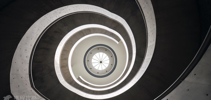 建筑从细部到整体构成,甚至包括景观设计,都如同水面的波纹一样,层层展开。而中心便是圆筒状5层挑空的空间。双重螺旋楼梯盘旋而下,形成中央圆形空间。如同DNA结构的双螺旋清水混凝土楼梯,是HEM建筑一个令人叹为观止的亮点,同时也见证了中国建筑技术的飞跃进步。