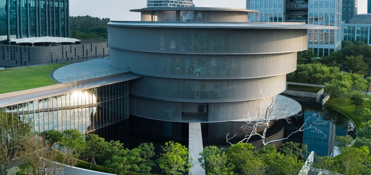 HEM的建筑设计把对立的特征融合起来,形成了由简单的圆形和方形构成的建筑形体。作为中心的圆形,其重心和尺度伴随着高度发生偏移,产生了由内到外,由建筑到城市,缓缓扩散的效果。这是中原古建筑“天圆地方”的传承,也是象征性纯几何学立体的交错而创造出具有岭南建筑文化特征、呈现光影礼赞的建筑风景。