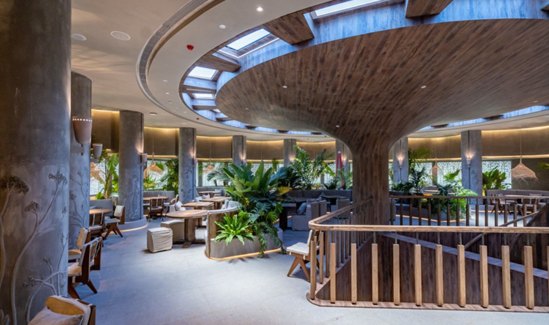 未来花园:九百多种来自世界各地的植被生根于此,在水泽波动的亚克力顶棚下,展示着生命的活力。