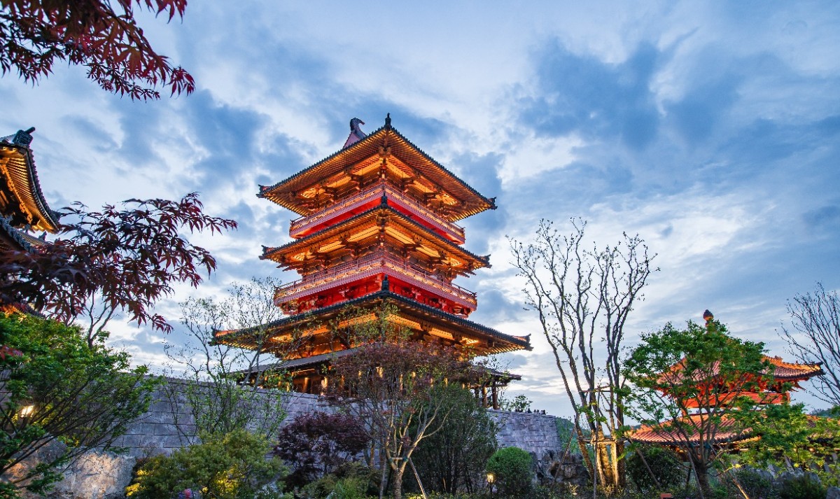 南京园景阳楼作为园博园内地标性建筑和独有文化标识,辅以山林嘉树为美景,再现中国古典园林转型期清华优雅的审美。登楼可尽揽园区全貌,是南京极佳日落观赏点。