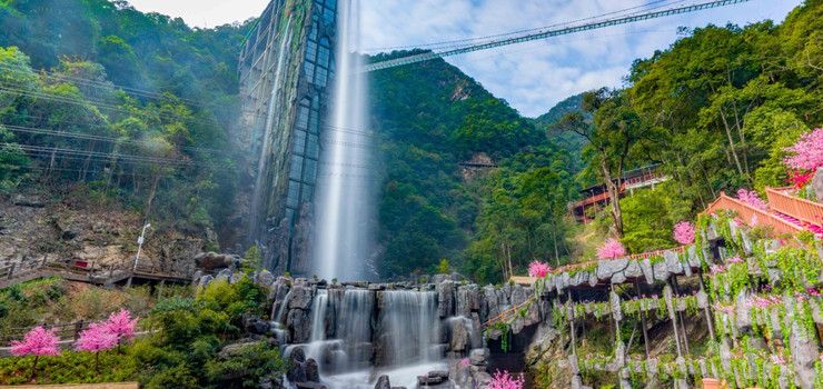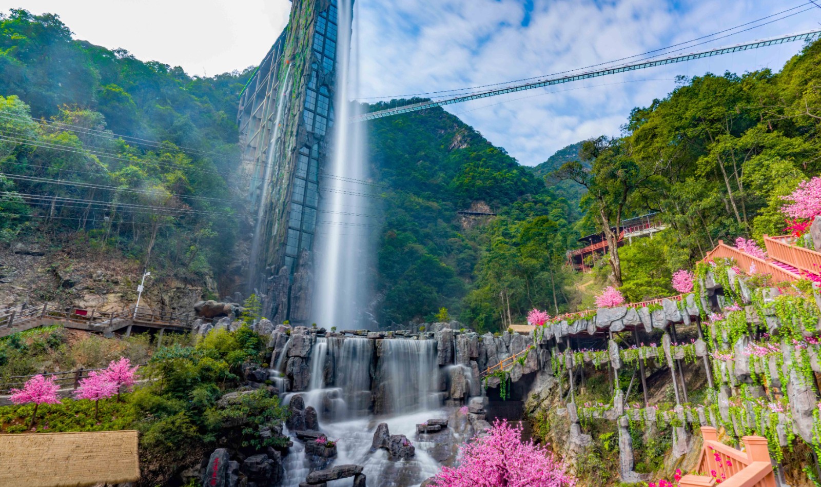 瀑布内安装有3台观光电梯,是世界上罕见的瀑布与观光电梯组合游玩体验项目,瀑布顶部设有80米长的玻璃观光平台,在高达168米的玻璃观景平台上,可以感受“飞流直下三千尺,疑是银河落九天”的诗意和豪情。