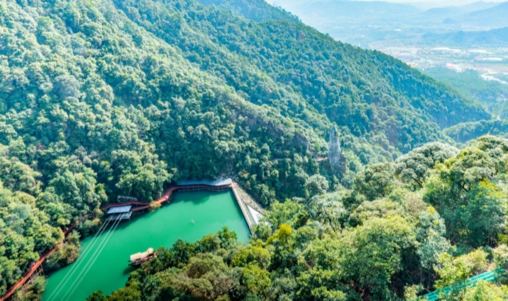观光电梯可直达云山谷,谷内景色四季如春,令人心旷神怡。