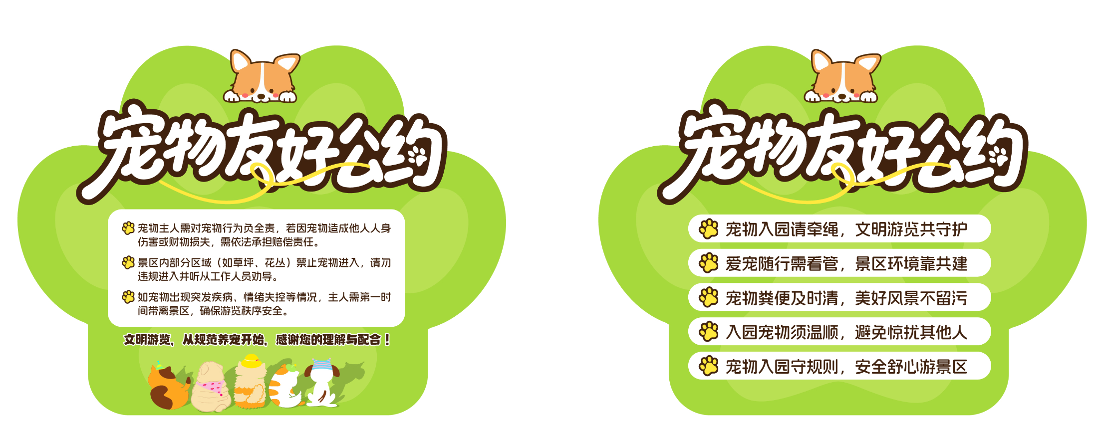 5、主人携带宠物入园,一人可携带1个宠物入园(免费),需签订宠物入园协议,出示先关宠物免疫证件;