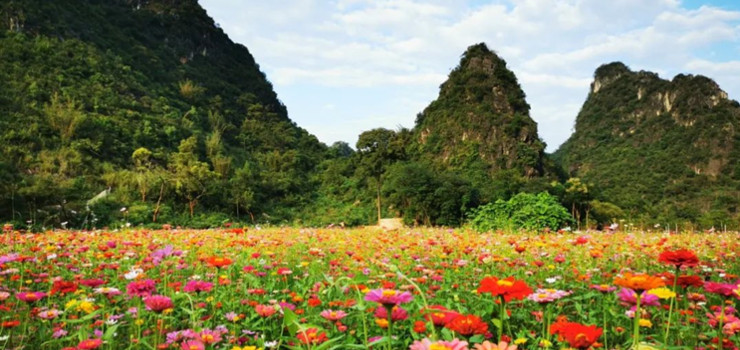 英峰圣境位于英西峰林走廊最精华段,是英西峰林走廊核心景区系列之一。园内拥有独特的喀斯特地貌,湖泊湿地,森林草甸,河谷溪流,珍稀动植物等,原始生态环境保存完好。园内有明镜般的湖泊,水美草丰的牧场,繁花盛开的山谷花海,百怪石林,飞禽走兽时常出没的原始树林,有着美丽的九龙天池之称。