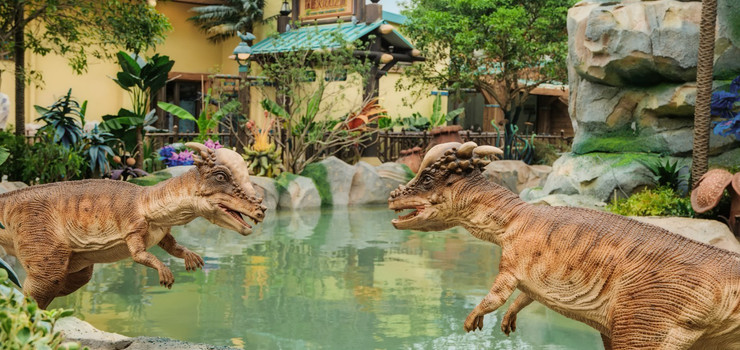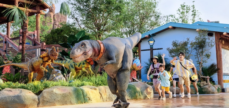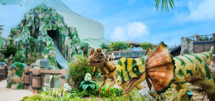 中华恐龙园聚集了国际优秀团队,大量应用前沿尖端科技,耗费巨资,历时三年,打造了一个真实的侏罗世界。作为华东融合多项国际技术的超大型科技类体验项目,恐龙基因研究中心占地高达23000平方,其内划分为基因展示区和古生态雨林复原区两大区域,含括资料室、监控室、基因研究、培养修复、植物生态、地质环境等数十个分区……细节打造浓郁科研氛围。古生态雨林复原区还原了侏罗纪时期恐龙的栖息环境,通过国际尖端技术打造并还原远古生态风貌,其内参天古树奇花异草随处可见,孢子植物和共生体地衣遍布其间,漫步于此,仿佛身临《阿凡达》那光怪陆离、唯美梦幻的潘多拉星球。